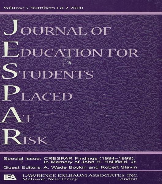 This double issue presents summaries of the scholarly and practical-reform accomplishments of the first five years of the Center for Research on the Education of Students Placed at Risk (CRESPAR). This bold, five-year initiative addressed several of the problems that most directly challenge the values and practical aspirations of modern democracies.