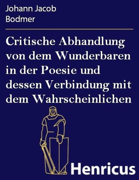 Johann Jacob Bodmer: Critische Abhandlung von dem Wunderbaren in der Poesie und dessen Verbindung mit dem Wahrscheinlichen. In einer Vertheidigung des Gedichtes Joh. Miltons von dem verlohrnen Paradiese; Der beygefüget ist Joseph Addisons Abhandlung von den Schoenheiten in demselben Gedichte. Zürich: Conrad Drell und Comp., 1740. [Nachdruck: Stuttgart: J. B. Metzlersche Verlagsbuchhandlung, 1966 (= Deutsche Neudrucke. Reihe Texte des 18. Jahrhunderts. Herausgegeben von Paul Böckmann und Friedrich Sengle)]. Erstdruck: Zürich [s.n.] 1740. Ursprünglich als besonderer Abschnitt zu Breitingers Kritischer Dichtkunst gedacht.