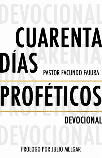 "¿QUIERES ALCANZAR LO QUE AUN NO HAS ALCANZADO? ¡TIENE QUE HABER UNA MAYOR ENTREGA...!" Estas fueron las palabras que resonaron en mi corazón, durante el primer servicio del año 2017. En respuesta entregué mis primicias junto a veintiún días de ayuno. Pero esos veintiún días se convirtieron en cuarenta. En esos momentos de intimidad con el Espíritu Santo, él se reveló a mi vida con nuevas experiencias. La paternidad de Dios sobre mi vida, me maravilló y pude comprender que la autoridad delegada a sus hijos, descansa en la persona de Cristo, quien vive en nosotros, y espera la manifestación de los herederos del reino de Dios. Por esto, querido amigo/a quiero compartir a través de estas páginas, dosis diarias del poder de Dios! ¡Hay poder en Su nombre!!! Este devocional, te invitará a que puedas acercarte más al Espíritu Santo. ¡Son 40 decretos proféticos que si te animas a creerlos y a confesarlos con autoridad no habrá diagnóstico, enfermedad, circunstancia o gigante que prevalezca! Durante los 40 días de ayuno y oración, vivimos momentos proféticos en lo personal, como familia y en el ministerio. Personas con cáncer fueron sanados, deudas sobrenaturalmente pagadas, matrimonios restaurados y almas salvas para Cristo. En esos cuarenta días, recibí en mi espíritu la necesidad de plasmar estos decretos diarios en un libro, para que la Verdad sea impartida en nuestras vidas y seamos introducidos en una mayor intimidad con el Espíritu Santo. Ten la seguridad que verás la Gloria de Dios manifestarse en tu vida, familia, trabajo e iglesia diariamente y de manera poderosa. ¡Prepárate!