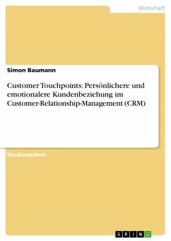 Studienarbeit aus dem Jahr 2009 im Fachbereich BWL - Offline-Marketing und Online-Marketing, Note: 1,7, Hochschule für Angewandte Wissenschaften Neu-Ulm; früher Fachhochschule Neu-Ulm , Sprache: Deutsch, Abstract: Der Aufbau und die Sicherung von Kundenbeziehungen hat in der Vergangenheit eine immer größer werdende Bedeutung bei den Unternehmen gewonnen. Die Gründe hierfür sind vielfältig. Verantwortlich dafür ist u.a. der Verlust der traditionellen Wertvorstellung durch einen höheren Bildungsstand und ein geändertes Informationsverhalten. Dadurch sind die Menschen in der Lage ihr Verhalten immer mehr an den eigenen Vorstellungen auszurichten. Jeder Kunde möchte seine individuellen Vorstellungen verwirklichen und wird somit immer anspruchsvoller. Die Kommunikation der jeweiligen Unternehmen muss daher die Kunden persönlich ansprechen. Des Weiteren werden Produkte immer austauschbarer. Die Produktqualität wird zur Selbstverständlichkeit. Es muss also versucht werden USP¿s über individuelle Kundenbetreuung zu schaffen. Ein USP stellt einen nachweisbaren, einzigartigen Wettbewerbsvorteil in Bezug auf Art, Zusammensetzung, Leistung eines Produktes oder beim Service dar. Zudem führt eine wachsende Informationsflut in den unterschiedlichsten Medien zu einem immer größer werdenden Kundenwunsch nach spezifisch auf Ihn ausgerichteten Informationsbotschaften. Nicht zuletzt spielt die Kostenfrage eine immense Rolle in dem Aufbau und der Sicherung von Kundenbeziehungen. Es ist davon auszugehen, dass es ca. fünf- bis siebenmal soviel kostet, einen neuen Kunden zu gewinnen, wie eine bestehende Kundenverbindung zu erhalten. Aufgrund dieser Faktoren wird im Folgenden erarbeitet, durch welche Customer Touchpoints die Kundenbeziehung im Rahmen von CRM persönlicher und emotionaler werden kann.