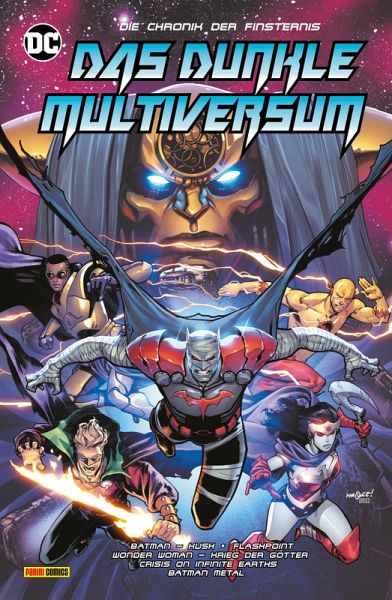 ALBTRAUMHAFTE WELTEN Das dunkle Multiversum - hier existieren die düsteren, ins Albtraumhafte verzerrten Parallelwelten der DC-Erde, denn hier haben wichtige Ereignisse der DC-Historie einen anderen Verlauf genommen! Auf einer dieser Erden wurde etwa Thomas Elliot, uns bekannt als Batmans psychotischer Widersacher Hush, Erbe des Wayne-Imperiums. In der düsteren Flashpoint-Realität erlangt Reverse-Flash die Herrschaft über Realität und Zeit. Während der Crisis on Infinite Earths wurde die Justice League ausgelöscht, und die Justice Society of America kämpft um die Zukunft ihrer Erde. Der Krieg von Wonder Womans Amazonen gegen die Götter nimmt einen tragischen Ausgang. Und dann ist da noch jene Erde, auf der sich Duke Thomas, ehemals Batmans Mitstreiter Signal, dem Batman, der lacht stellen muss ... Düstere Neuinterpretationen von fünf Event-Klassikern, inszeniert von Scott Snyder (BATMAN: DEATH METAL), Phillip Kennedy Johnson (SUPERMAN), Bryan Hitch (BATMANS GRAB), Dexter Soy (RED HOOD UND DIE OUTLAWS MEGABAND), Mike Perkins (LOIS LANE - REPORTERIN IM FADENKREUZ) und anderen. ENTHÄLT: TALES FROM THE DARK MULTIVERSE: BATMAN: HUSH 1, TALES FROM THE DARK MULTIVERSE: FLASHPOINT 1, TALES FROM THE DARK MULTIVERSE: WONDER WOMAN: WAR OF THE GODS 1, TALES FROM THE DARK MULTIVERSE: CRISIS ON INFINITE EARTHS 1, TALES FROM THE DARK MULTIVERSE: DARK NIGHTS: METAL 1