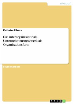 Studienarbeit aus dem Jahr 2004 im Fachbereich BWL - Unternehmensführung, Management, Organisation, Note: 1,00, Carl von Ossietzky Universität Oldenburg (Fachgebiet Organisation und personal), Veranstaltung: Seminar: Flexible Steuerung von Unternehmen, Sprache: Deutsch, Abstract: Angesichts der wachsenden Dynamik in der Entwicklung wirtschaftlicher Prozesse und der ansteigenden Komplexität der Umwelt erlangen seit einiger Zeit interorganisationale Unternehmungsnetzwerke zunehmende Beachtung in den Wirtschaftswissenschaften. Die Netzwerkorganisation wird dabei häufig als das Erfolgskonzept der Zukunft angesehen. Vor diesem Hintergrund steht im Rahmen dieser Arbeit das interorganisationale Unternehmungsnetzwerk im Zentrum der Betrachtung. Dabei ist der Blick vor allem auf die folgenden Fragestellungen gerichtet: Welche Vorteile kann die unternehmensübergreifende Vernetzung verschaffen? Welche Ausgestaltungsformen sind in struktureller Hinsicht möglich? Wie unterscheiden sich die verschiedenen Typen bezüglich ihrer Leistungsfähigkeit? Zur Beantwortung dieser Kernfragen wird in Kapitel 2 zunächst der Begriff des Unternehmungsnetzwerkes erläutert. Das Kapitel 3 liefert mit dem Transaktionskostenansatz die Begründung für die Evolution von Unternehmungsnetzwerken, welche als Hybride zwischen Markt und Hierarchie gelten, die unter bestimmten Voraussetzungen die Vorteile der beiden Institutionen miteinander vereinen können. Im vierten Kapitel werden dann verschiedene Typen von Netzwerken untersucht, wobei wegen der enormen Vielfalt möglicher Ausgestaltungsformen eine Beschränkung auf strategische und regionale Unternehmungsnetzwerke vorgenommen wird. Ein Vergleich der strukturellen Dimensionen soll anschließend Aufschluss auf die möglichen Unterschiede im Hinblick auf die Leistungsfähigkeit der verschiedenen Gestaltungen geben. Im Fazit werden die zentralen Ergebnisse der Untersuchung zusammengetragen und bewertet.