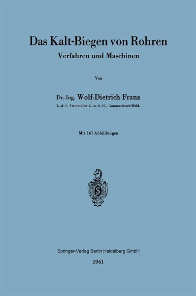 0 Einführung.- 1 Die Biegeverfahren.- 2 Vorgänge im Rohr beim Biegen.- 3 Das Biegen mit Stützdorn.- 4 Das dornlose Biegen.- 5 Rohrkaltbiegemaschinen.- 6 Biegewerkzeuge und Sonderanwendungen.- 7 Aufbau von Rohrwerkstätten.- 8 Zusammenfassung.- Schrifttum.