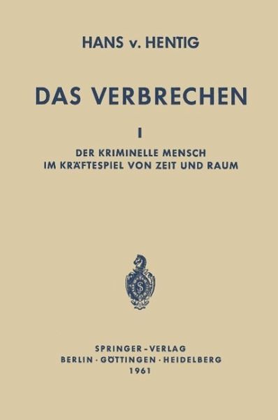 Erstes Buch Das Leitbild des verbrecherischen Menschen.- Erstes Kapitel Das Fehlbild von Gehirn und Drüsen.- Zweites Kapitel Dynamik und Bereich des Zufalls.- Zweites Buch Das Wirkungsfeld von Zeit und Raum.- Erstes Kapitel Zusammenhänge im Bereich der Zeit.- Zweites Kapitel Zusammenhänge im Gebiet des Raums.- Drittes Buch Gefüge und Funktion des Tatorts.- Erstes Kapitel Grundzüge einer Tatortlehre.- Zweites Kapitel Topographie der kriminellen Handlung.- Autorenverzeichnis.