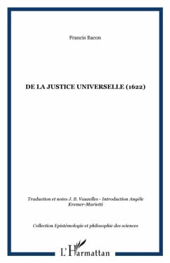 Nous publions en edition bilingue l'Essai d'un traite sur la justice universelle, comme il parut dans l'edition de 1824 accomplie par J.B. De Vauzelles, qui l'avait accompagne d'autres textes judiciaires de Bacon : Elements du droit commun d'Angleterre, Des devoirs d'un juge, Discours au justicier Hutton, Avis a Sir Georges Villiers... enfin De la revision des lois anglaises. Dans ce texte majeur, De la justice universelle, Bacon met au jour les "e;lois des lois"e;, autant ce qui preside a leur genese que les principes pour les produire : la loi qui dicte la loi.