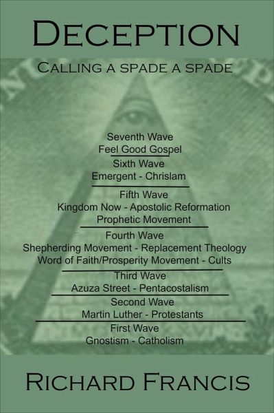 Deception is a very strong word...in its simplest form it is a telling of lies. The thing about lying to "Christians', is that the lie has eternal consequences. Deception brings complacency. Complacency makes one believe that one's name is written in the Lamb's Book of Life when it actually is not. Believing a lie will eventually become a truth to you. How sure are you of the eternal consequences in your life? This book not only reveals the deception but it also names those who teach such. Are you willing to risk eternal life by not reading this book? Be a Berean and stand up for truth because we all know the end is near...