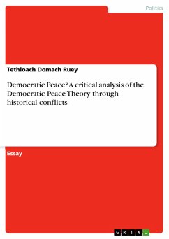 Essay from the year 2025 in the subject Politics - Topic: International relations, grade: A, , course: Ph.D. in Diplomacy and International Affairs, language: English, abstract: The Democratic Peace Theory claims that liberal democracies do not go to war with each other - but does this assertion hold up against historical evidence? This paper offers a critical analysis of the Democratic Peace Theory by exploring its theoretical background and contrasting it with historical examples of warfare. The objective is to determine whether liberal democracies are indeed more peaceful - both toward each other and toward non-democratic states. Through the investigation of major military conflicts, including interventions by the United States and the United Kingdom, the paper examines whether the theory stands up to empirical scrutiny. It also discusses the ideological contradictions within liberalism and explores the actual causes and triggers of global wars. This work contributes significantly to political theory and international conflict research.