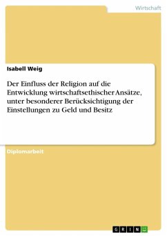 Diplomarbeit aus dem Jahr 2003 im Fachbereich BWL - Unternehmensethik, Wirtschaftsethik, Note: 1,3, Hochschule für Bankwirtschaft , Sprache: Deutsch, Abstract: So ist also der, der in unserer heutigen Wirtschaftswelt Moral und Ethik achtet, "dumm"? OTTFRIED HÖFFE [1993] spricht sogar von "Moral als Preis der Moderne". Ökonomisches Handeln hat sich demnach von humanen, sozialen und religiösen Werten abgekoppelt. Das Anliegen der Wirtschaftsethik ist es, diese Werte wieder in einen engeren Zusammenhang zum ökonomischen Handeln zu bringen. . Was sind die wirtschaftsethischen Aspekte, die die unterschiedlichen Religionen hervorbringen, und welche tatsächlichen Konsequenzen haben sich daraus entwickelt? Oder konkret gefragt: . Lässt sich aus dem Umgang der Bibel oder des Korans mit der Ökonomie der jeweiligen Zeit etwas lernen für den Umgang mit wirtschaftlichen Fragen des gegenwärtigen globalen Marktes, insbesondere für unsere Einstellung zu Geld und Besitz? Dies sind die Fragen, denen ich mit dieser Diplomarbeit auf den Grund gehen möchte. Zunächst gilt es zu klären, ob die Wirtschaftsethik -und somit die Wirtschaft selbst- überhaupt etwas mit Religion zu tun hat. Dazu ist es sinnvoll, den Begriff der Ethik im Allgemeinen zu definieren und dann auch den der Wirtschaftsethik im Speziellen abzugrenzen. Indem ich anschließend die drei großen monotheistischen Religionen einzeln in Hinblick auf ihre Aussagen zu Geld und Besitz untersuche, hoffe ich eine Antwort darauf zu finden, welchen Beitrag in der wirtschaftsethischen Reflexion der Rückgriff auf die religiösen Traditionen für die Klärung dessen leisten kann, was eine menschen- und sachgerechte Ordnung der Wirtschaft ist.