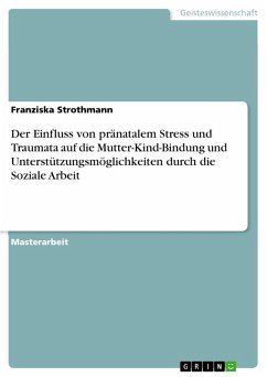Masterarbeit aus dem Jahr 2022 im Fachbereich Soziale Arbeit / Sozialarbeit, Note: 1,0, Fachhochschule Mannheim, Hochschule für Sozialwesen (Sozialwesen), Sprache: Deutsch, Abstract: Die vorliegende Masterarbeit gibt einen Überblick über pränatalen Stress und Traumata und wie sich diese auf das ungeborene Kind sowie die Mutter-Kind-Bindung auswirken. Im Zuge dessen werden verschiedene Unterstützungsmöglichkeiten durch die Soziale Arbeit aufgezeigt. Es wird zunächst ein Überblick über die pränatale Entwicklung geboten. Um die früheste Entwicklungsphase eines Menschen zu verstehen, ist ein biologisches Grundverständnis nötig, weshalb von der Befruchtung bis hin zu den ersten Lernerfahrungen die wesentlichen Entwicklungsschritte dargestellt werden. Daraufhin werden die Grundlagen der Bindungsforschung mit dem Fokus auf die pränatale Bindung erläutert, da sich gezeigt hat, dass die Mutter-Kind-Bindung bereits in der pränatalen Phase beginnt und entscheidend durch Erfahrungen während der Schwangerschaft beeinflusst wird. So können äußere schädigende Einflüsse wie Toxine, Über- oder Unterernährung sowie überlebte Abtreibungsversuche, aber auch innere schädigende Einflüsse wie mütterliche psychische Belastungen und negative Einstellungen diese sensible Entwicklungsphase sowie die Mutter-Kind-Bindung erheblich beeinträchtigen. Aus diesem Grund werden innerhalb dieser Masterarbeit unterschiedliche Präventions- und Interventionsmöglichkeiten, vor allem durch die Soziale Arbeit, aufgezeigt. Hierzu zählen neben dem Jugendamt und dem Allgemeinen Sozialen Dienst die Frühen Hilfen, Schwangerschaft- und Suchtberatungsstellen, verschiedene Angebote aus der Traumapädagogik sowie die Frühinterventionsprogramme SAFE und STEEP. Vertieft werden die theoretischen Erkenntnisse und Darstellungen anhand von empirischer, qualitativer Forschung. Hierzu wurden fünf Expertinneninterviews geführt. Einige schwangere Frauen fallen durch das Raster des präventiven und intervenierenden Versorgungsangebot, dies liegt zum einen an der Unkenntnis über die bestehenden Angebote und zum anderen an der Angst vor dem Jugendamt, welches häufig mit dem gefürchteten Sorgerechtsentzug verbunden wird. Zudem sollte die Vernetzung und Kooperation zwischen der Sozialen Arbeit und dem Gesundheitswesen, vor allem Gynäkolog:innen vertieft und gefördert werden, da dies eine wichtige Anlaufstelle für schwangere Frauen darstellt. Daher wird in dieser Arbeit die Relevanz einer universellen, niederschwelligen und flächendeckenden Prävention und Intervention besonders hervorgehoben, um eine professionelle und bedarfsgerechte Unterstützung durch die Soziale Arbeit gewährleisten zu können.