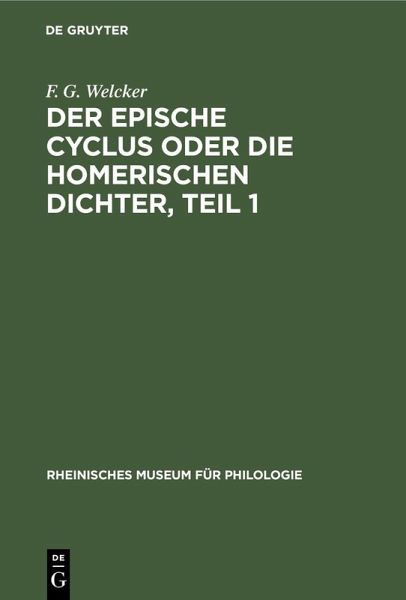 Frontmatter -- Vorrede zur zweiten Auflage -- Vorrede zur ersten Auflage -- Inhalt -- Erste Abtheilung. Der epische CycluS -- I. Proklos der Grammatiker des zweyten Jahrhunderts -- II. Der epische Cyclus gebildet durch Zenodotes von Ephesos -- III. Welche Gedichte gehörten zum epischen Cyclus? -- IV. Ein früherer epischer Cyclus als der Zenodotische ist nicht bekannt -- V. Kyklos als Zusammenstellung, Inbegriff, Auszug, System, Handbuch -- VI. Das kyklische oder kyklographische Epos -- Zweite Abtheilung. Die Homerischen Dichier -- I. Homeros -- II. Homeros in Neonteichos -- III. Ärktinos von Milet -- IV. Kreophylos von Lamos, Zos, Chios -- V. Kynäthos, Kinäthon von Chios, von Lakedämon, von Syrakus und Corinth. Hymnus auf den Delischen Apollon. Kleine Ilias. Telegonee. Oedipodee. Heraklee (Oechalias Einnahme -- VI. Thestorides und Prodikos von Phokäa -- VII. Diodoros von Erythrä -- VIII. Lesches der Lesbier, von Mityleae, von Pyrrha -- IX. Ein Kolophonier -- X. Eumelos von Lorinth -- XI. Ägias von Trözen -- XII. Dren früh untergegangene Homerische Gedichte -- XIII. Stasinos, Hegesias oder Hegesinoos, die Kyprier. Ein Halikarnasser. Kypria -- XIV. Eugammon von Kyrene. Telegonee -- XV. Amazonia. Atthis von Hegesinoos -- XVI. Danais -- XVII. Lunstbegriss des Cyclischen in lebendiger epischer Poesie -- XVIII. Ueber den Vortrag der Homerischen Gedichte. -- XIX. Homerische Gedichte ausser dem Cyclus -- Anhang -- Anhang zur zweiten Auflage -- Register