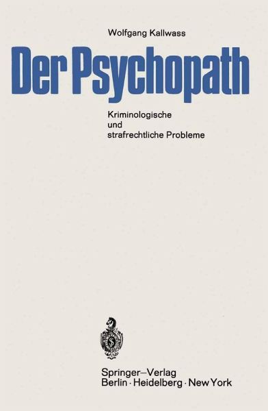 Erster Abschnitt: Kriminologischer Teil.- 1. Kapitel. Psychopathie als anlagemäßige Abnormität.- 2. Kapitel. Psychopathie als Kombination bestimmter Eigenschaften.- 3. Kapitel. Psychopathie und Kriminalität.- Zweiter Abschnitt: Strafrechtlicher Teil.- 1. Kapitel. Der Psychopath und die Schuldfrage.- 2. Kapitel. Die Sonderanstalt für Psychopathen und die Strafrechtsreform.- Persönlicher Dank.