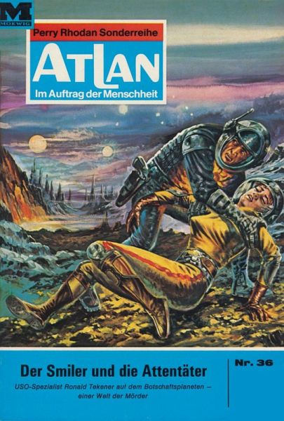 USO-Spezialist Ronald Tekener auf dem Botschaftsplaneten - eine Welt der Mörder Auf Terra, den Welten des Solaren Imperiums und den Stützpunkten der USO schreibt man Ende Juli des Jahres 2408 Standardzeit. Die Auseinandersetzung zwischen der USO, der von Lordadmiral Atlan geleiteten galaktischen Ordnungsmacht, und der Condos Vasac, dem galaktischen Verbrechersyndikat, spitzt sich immer weiter zu - und für die USO-Spezialisten heißt das, immer riskantere Einsätze zu wagen, wenn sie die geheimnisvollen Machthaber der CV-Lenkzentrale endgültig stellen wollen. Erst kurz zuvor hat die USO einen gewaltigen Schritt nach vorn getan. USO-Major Sinclair M. Kennon, als Professor Dr. Lorb Weytchen maskiert, hat im Zusammenwirken mit zwei Siganesen Gerzschko-1, einen der Fremden der Lenkzentrale, lebend fangen und nach Quinto-Center bringen können. Jetzt wird Gerzschko-1, der einem Maahk ähnlich sieht, von Mutanten ins Verhör genommen - aber der Fremde verweigert die Aussage. Erst durch das Erscheinen eines Maahk-Diplomaten kann etwas Licht in das Dunkel gebracht werden, und für Ronald Tekener zeichnet sich ein neuer Einsatz ab. Und es kommt zur Konfrontation: DER SMILER UND DIE ATTENTÄTER ...