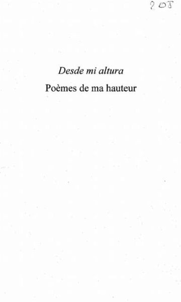 Antonio GUERRERO, cubain en residence aux Etats-Unis depuis les annees 1990, a ete condamne a la prison a vie par un tribunal de Miami pour avoir dejoue des plans terroristes contre Cuba. Du haut de sa cellule au douzieme etage, il ecrit ces Poemes de ma hauteur (Desde mi altura), des poemes pleins de dignite, de verite et d'amour. Reconnaissant la petitesse de sa culture litteraire, il affirme neanmoins que "e;Ma hauteur, c'est celle de nous tous, nous qui montrons la voie"e;.