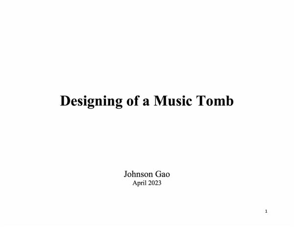 12 pieces of jpg image of music sheet that can make bronze plates were used in this eBook. Among those songs some of lyrics are copied from very famous ancient Chinese poems, such that written by Li Bai, Du Fu, Du Mu, etc. The main aim of the tomb is to promote Chinese ancient poetry. There are also 2 epitaphs both in English and Chinese to show people the song writer's contribution to the mankind, especially the Gao's Equation that can predict the doomsday in around A. D. 3552. And before the doomsday to come, there will appear three tides of worldwide immigration: toward rich country, bare mountains and vast ocean. The real page numbers are more than in the contents due to the EBook transformation.