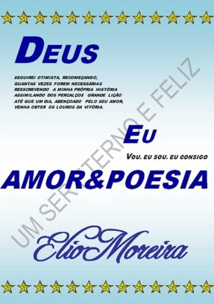 DEUS - EU - AMOR & POESIA 105 páginas - Palavras - 18. 440 92 poemas Neste livro O autor descreve os desencontros e os reencontros em vidas. E da vida. Agradece em seus poemas aquilo que a vida lhe proporcionou, do sentimento amoroso que trouxe enraizado em seu coração e expõem claramente, como a seu modo de sentir, deveria ser vivido e enformoseado a pureza de um amor. Por achar-se esclarecido e por acreditar fielmente em vidas passadas, e disto já ter tido inúmeras provas. O poeta escreveu poemas onde fala e lamenta não ter cumprido, nesta sua reencarnação, muitas de suas atribuições, que programadas no mundo espiritual, seria o subir de mais um degrau, se bem desempenhadas, serviriam de aprendizados para sua evolução. Em quase todos os poemas, o poeta agradece a Deus pela sua criação e por lhe fornecer os meios para que, de uma forma ou de outra amenize as magoas do coração. Também reclama a falta de sua alma companheira, porque ainda neste plano não houve o derradeiro encontro, e talvez não tenha existido o acompanhamento para a própria redenção. Também agradece aquelas almas afins, na demonstração de carinhos, nas juras de grandes amores. A todas elas o poeta se entrega com a maior naturalidade comparando-as com o encanto delicado encontrado nas flores, "flores vivas" que embelezam seus dias e realizam uma transformação, porque o carinho de alguém sempre conforta e afasta a solidão.
