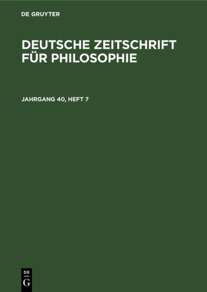 Keine ausführliche Beschreibung für "DEUTSCHE ZEITSCHRIFT F. PHILOSOPHIE JG. 40/7 DZPH E-BOOK" verfügbar.