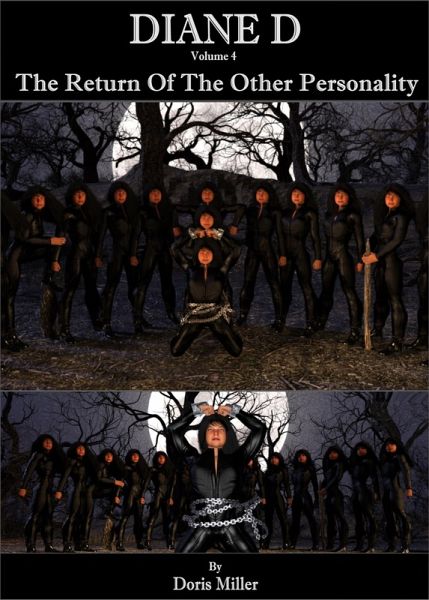 DIANE D The Return Of The Other Personality - Volume 4 involves Diane D being let out of the mental institution temporarily on house arrest and is in her family's custody for the time being and is back at the organization. It is causing fear around the organization, making everyone feel very uncomfortable and very afraid knowing that Diane D's presence is there at the organization. Several children at the organization frighteningly approach the staff members and claim to have seen Diane D sitting in a chair inside her grandmother Margarita's office angrily looking out the doorway at them as they passed by Margarita's office doorway. Staff members start to wonder could it be the evil, vicious, powerful, dangerous and murderous other personality of Diane D's sitting there in the chair inside Margarita's office angrily looking out into the hallway at the children. The children also claim to have seen something black strapped around both of Diane D's ankles. Michael's parents are soon worried for his safety being married to Diane D. They try to convince him to leave Diane D. A producer puts Diane D and Dana in an online sword fighting commercial. Controversy arises over Diane D and Dana's online sword fighting commercial. Kurt whose father was one of the authority figures killed by Diane D's other personality, claim that since Diane D and Dana are murderers, they do not need to be making any profits from anything! The producer caves in and cancels the online sword fighting commercial, causing Diane D and Dana not to make any profits from it! Kurt then claims to see Diane D stalking him in different places! Diane D denies ever stalking Kurt. Kurt then gets nightmares about Diane D stalking him inside some creepy woods at night while she is walking bent all the way backwards on all fours handcuffed, shackled and chained trapped in a contortionist position! In another nightmare, Kurt is stalked by Diane D again! This time, he is stalked, chased and attacked by multiple females in the woods who look and dress exactly like Diane D, around ten to fifteen of them! Kurt becomes shocked seeing multiple beings who look and dress exactly like Diane D! He realizes that his soul or spirit is in some type of spiritual underworld. He then realizes that these beings who look and dress exactly like Diane D are not human, but actually demons! He realizes that he is trapped in the spiritual underworld with these demons who look exactly like Diane D! The demons then tie Kurt up! They light up his fingers as they are about to set him on fire! They then turn and hurry away from Kurt! They run far from him and form a line facing him! They then give Kurt a death stare as they stand there ready to watch him burn alive! Kurt then wakes up screaming! He is out of breath as he frighteningly looks around the room. He does not see the demons who look exactly like Diane D anymore. He is saved from them simply by waking up! He later tells his family about his horrific nightmares about the multiple demons who look exactly like Diane D that try to set him on fire and watch him burn alive! One day, Diane D makes an apologetic speech to the victims' family members inside a hotel conference room. Later on, tensions start to flare as the widows and Diane D go at each other! Jeremy whose father was also killed by Diane D's other personality hollers and yells at Diane D! He starts to head right towards her! He approaches Diane D at the front of the room and tries to attack her. Diane D gets on the defense as she and Jeremy get into a physical altercation! She overpowers Jeremy putting him into a chokehold! She then becomes a one-woman army and causes countless members of the victims' families to be sent to the hospital!