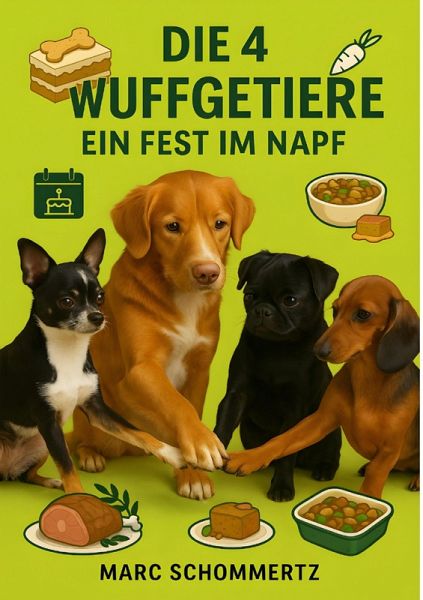 "Die 4 Wuffgetiere - Ein Fest im Napf" ist das ideale Buch für alle Hundefreunde, die ihre vierbeinigen Begleiter nicht nur lieben, sondern auch kulinarisch verwöhnen wollen. Mit viel Liebe zum Detail hat Autor Marc Schommertz - bekannt für seine Volksrezepte - ein Werk geschaffen, das sich ganz dem Genuss für Hunde widmet. Dieses Buch versammelt 30 kreative, gesunde und festliche Rezepte, die zu besonderen Anlässen, Geburtstagen oder einfach als kleine Aufmerksamkeit serviert werden können. Vom herzhaften Braten über köstliche Aufläufe bis hin zu bunten Hundekuchen ist für jeden Geschmack und Anlass das passende Rezept dabei. Dabei achtet der Autor auf hochwertige Zutaten, einfache Zubereitung und eine ausgewogene Zusammensetzung. Neben den Rezepten enthält das Buch wertvolle Tipps und Tricks zur Lagerung, Zubereitung und Portionierung, um den Hundegenuss perfekt zu machen. Ein Highlight für jeden, der seinen Hund als vollwertiges Familienmitglied betrachtet. Die Rezepte sind erprobt, tiergerecht und mit Liebe entwickelt - für ein wahres Fest im Napf.