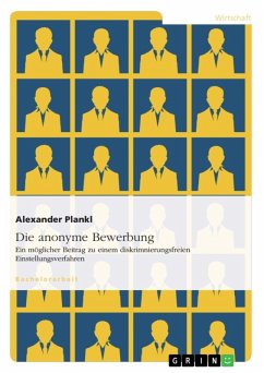 Bachelorarbeit aus dem Jahr 2013 im Fachbereich Führung und Personal - Sonstiges, Note: 1,7, Hochschule Aschaffenburg (Wirtschaft und Recht), Sprache: Deutsch, Abstract: Die Diskriminierung von Menschen beim Zugang zu Arbeit stellt nach wie vor ein Problem erheblichen Ausmaßes dar und ist von hohem politischen und sozialen Interesse. Vor allem Menschen mit Migrationshintergrund, ältere Arbeitsuchende sowie Frauen werden in Bewerbungsverfahren häufig benachteiligt. Diskriminierung stellt jedoch nicht nur ein Problem gesellschaftspolitischer Natur dar. Durch mangelnde Diversität erfahren Unternehmen einen Verlust an wirtschaftlicher Effizienz, woraufhin sich ein Wohlfahrtsverlust aufgrund mangelnder Diversität einstellen kann. Auch wenn bereits institutionelle Rahmenbedingungen zur Verhinderung von Diskriminierung auf dem Arbeitsmarkt geschaffen wurden, bestehen weiterhin Benachteiligungen diverser Gruppen, die von den stereotypen Wunschkandidaten der Arbeitgeber abweichen, was nicht zuletzt im Bewerbungsprozess sichtbar wird. Anonymisierte Bewerbungsverfahren stellen möglicherweise eine geeignete Methode dar, mit deren Hilfe man derartige Benachteiligungen eliminieren oder zumindest reduzieren kann. Hinter diesem Begriff verbirgt sich die Idee, Personalverantwortlichen kritische Merkmale der Bewerbenden vorzuenthalten, wodurch eine Einschätzung nur aufgrund objektiver Merkmale möglich sein soll. In der vorliegenden Arbeit werden zunächst die für Einstellungsverfahren relevanten Normen des AGG vorgestellt. Nach einer Erklärung der möglichen Formen von Diskriminierung wird die Rolle des Betriebsrates in Bewerbungsverfahren geklärt. Anschließend wird auf die möglichen Gefahren eingegangen, mit denen Recruiter im Berufsalltag konfrontiert werden. Nach einer kurzen Erläuterung aktueller Entwicklungen im Recruiting, ist das letzte Kapitel den anonymisierten Bewerbungsverfahren gewidmet. Abschließend findet eine persönliche kritische Auseinandersetzung mit den aktuellen Erkenntnissen statt.