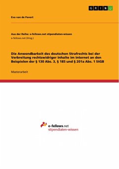 Masterarbeit aus dem Jahr 2024 im Fachbereich Jura - Strafrecht, Universität Passau (Juristische Fakultät), Sprache: Deutsch, Abstract: Die Arbeit beschäftigt sich vorliegend damit, ob und inwieweit deutsches Strafrecht auf Internetsachverhalte aus der gesamten Welt anwendbar ist und nennt eigene Einschränkungsvorschläge des deutschen Strafanwendungsrechts. Durch die globale Vernetzung mittels Internet ergibt sich für das deutsche Strafrecht eine unerwartet große Erweiterung auf Internetsachverhalte aus der gesamten Welt. So kann es regelmäßig passieren, dass für eine Beleidigung in einem Internetforum vom anderen Ende der Welt aus, plötzlich § 185 StGB Anwendung findet. In der Arbeit wird die Anwendung des deutschen Strafrechts auf Internetsachverhalte anhand der Strafnormen der §§ 130 III, 185 und 201 a I StGB anschaulich dargelegt. Am Ende der Arbeit wird ein zeitgemäßer Lösungsvorschlag zur Eindämmung des deutschen Strafanwendungsrechts vorgetragen. Die Arbeit folgt folgendem chronologischem Aufbau: § 1 Erläuterung zur Begrifflichkeit des Internetstrafrechts und Statistiken zur Brandaktualität und der Weite des Phänomens der Begehung von Straftaten im Internet. § 2 Die Besonderheiten der Strafparagraphen (uA der Volksverhetzung und Beleidigung) werden spezifisch im Kontext des Internets beschrieben. Für vertiefende Hinweise findet man verweisende Quellenangaben. § 3 Nun folgt der Hauptteil: Das deutsche Strafanwendungsrecht und dessen Anwendungsprobleme werden im Kontext des Internetstrafrechts dargelegt, dies chronologisch und vor allem anhand der ausgewählten Strafnormen veranschaulicht. Am Ende der Arbeit folgt ein Lösungsvorschlag zur Eindämmung des deutschen Strafanwendungsrechts. Neueste Rechtsprechung (Stand: Ende 2024) wurde eingearbeitet.