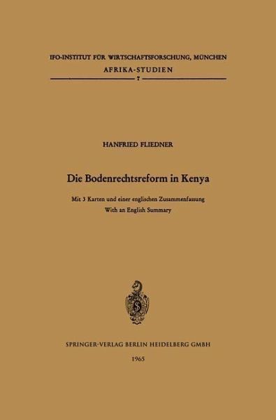 Das traditionelle Bodengewohnheitsrecht der Kikuyu.- Änderungen des Rechtszustands in der kolonialen Epoche.- Das Gestaltwerden der Reform.- Die Flurbereinigung.- Das neue Recht.- Das Schicksal der Berechtigungen nach Gewohnheitsrecht.- Die Kontrolle von Grundstücksgeschäften.- Grundstücksteilung und Erbenabfindung.- Überblick über die Bodenrechtsreform in den übrigen Stammesgebieten.- Das Programm zur Ansiedlung von Afrikanern im europäischen Farmgebiet.- Rechtsänderungen durch die Verfassung von 1963.- Zusammenfassung der Ergebnisse und Ausblick.- Summary.