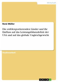 Studienarbeit aus dem Jahr 2010 im Fachbereich BWL - Wirtschaftspolitik, Note: 1,0, ( Europäische Fernhochschule Hamburg ), Sprache: Deutsch, Abstract: Der Chefökonom einer deutschen Großbank behauptet, dass der Einfluss erdölexportierender Länder auf das amerikanische Defizit in der Leistungsbilanz größer sei, als in der Öffentlichkeit wahrgenommen werde. Diese Arbeit versucht dieser Aussage auf den Grund zu gehen und die Relevanz dieser Aussage zu prüfen. Einflüsse auf Leistungsbilanzdefizite können sehr komplex sein und deshalb gestaltet sich die Ursachenforschung eher schwierig. Im Falle der USA können aber einige Hauptfaktoren ausfindig gemacht werden, die hier aufgezeigt und analysiert werden sollen. Auch die Wechselkurspolitik der erdölexportierenden Länder spielt hier eine Rolle. Außerdem soll aufgezeigt werden, inwieweit die erdölexportierenden Länder am globalen Ungleichgewicht beteiligt sind. Auch hier gibt es vielschichtige Ursachen und Gründe für das Ungleichgewicht. Diese Arbeit konzentriert sich deshalb nur auf den Einfluss der erdölexportierenden Länder. Dazu werden zunächst außenwirtschaftliche Grundlagen gelegt. Danach wird eingegrenzt, wer die erdölexportierenden Länder sind um dann die Lage der USA zu analysieren. Da es den Rahmen dieser Arbeit sprengen würde, alle Grundlagen und Ausführungen bis ins kleinste Detail zu erörtern, sei an dieser Stelle auf das Literaturverzeichnis und die Vermerke im Text hingewiesen, um einen tieferen Einblick in das Themengebiet zu bekommen.