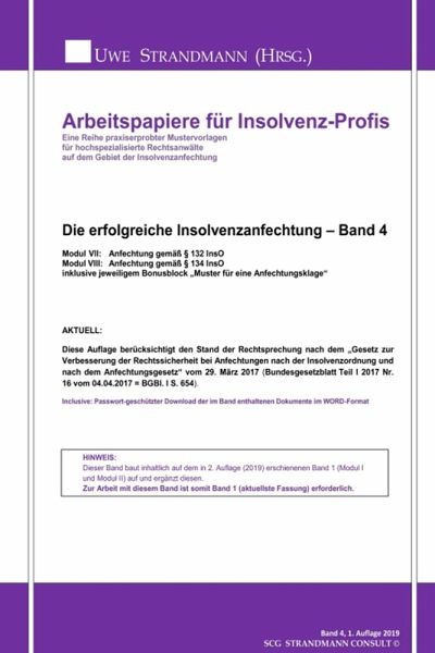 Mit "Die erfolgreiche Insolvenzanfechtung" erhalten Sie exklusive Muster für Anfechtungsprofis, verbunden mit einer Anweisung zu deren Handhabung. Damit lassen sich in kürzester Zeit ausführliche, hochqualitative Anfechtungsschreiben/Klageschriften formulieren, indem man die Muster an den farblichen Markierungen auf das spezielle Mandat anpasst. Der Wert liegt vor allem im großen Zeitgewinn. Bei wiederholten Anfechtungen erweist sich dies als riesiger Vorteil, ohne den man nie mehr arbeiten möchte. Durch den Bonusblock "Muster für eine Anfechtungsklage" lässt sich aus dem Anspruchsschreiben mit wenigen Handgriffen die vollständige Klageschrift erstellen. HINWEIS: Dieser Band baut inhaltlich auf den bereits in 2. Auflage (2019) erschienenen Band 1 (Modul I und Modul II) auf und ergänzt diesen. Zur Arbeit mit diesem Band ist somit Band 1 (aktuellste Fassung) erforderlich. Der nun bereits in 2. Auflage (2019) erschienene Band 1 beinhaltet die Anfechtung "gegenüber privaten Gläubigern" und "nach Druckantrag". Diese Auflage berücksichtigt den Stand der Rechtsprechung nach dem "Gesetz zur Verbesserung der Rechtssicherheit bei Anfechtungen nach der Insolvenzordnung und nach dem Anfechtungsgesetz" vom 29. März 2017 (Bundesgesetzblatt Teil I 2017 Nr. 16 vom 04.04.2017 = BGBl. I S. 654). Jeder Band beinhaltet einen Passwort-geschützten Download der im Band enthaltenen Dokumente im WORD-Format Ergänzt wird die Reihe durch Band 2 (Rückführung der ungekündigten KK Linie, Lastschriften) und die Bände 3 (Anfechtung ggü. Krankenkasse u. Finanzamt, Bargeschäft) und 4 (Anfechtung gemäß § 132 InsO und § 134 InsO). Kurz: Die perfekte "Arbeitswaffe" für jeden Anfechtungsprofi!