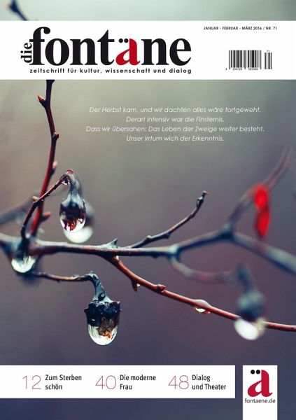 Die Fontäne ? ein interessanter Name für eine spannende Zeitschrift. Die Fontäne steht nicht nur mit ihrem Namen für eine mannigfaltige Quelle, sie ist auch in ihrem Themenspektrum vielseitig und vielfältig. Aus ihr entspringen geistes-, kultur- und naturwissenschaftliche Themen und werden von Experten einer großen und anspruchsvollen Leserschaft dargeboten. Im Mittelpunkt steht dabei immer der Mensch, der es schafft, die Synthese zwischen emotionaler und rationaler Welt ? den Einklang von Herz und Verstand ? zu vollbringen.