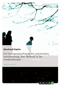 Diplomarbeit aus dem Jahr 2006 im Fachbereich Psychologie - Beratung und Therapie, Note: 1, , Sprache: Deutsch, Abstract: Bei dieser Diplomarbeit habe ich mehrerer Komponenten gesucht, die sowohl alte als auch neue Erfahrungszugänge zur Genogrammarbeit miteinander verbinden wollen: Zum Ersten bin ich in meiner früheren Sozialpädagogik-Arbeit im Heimbetrieb beim Heilpädagogischen Förderzentrum (HFZ) Bad Säckingen/Rickenbach (Südschwarzwald) dem Genogramm begegnet (z.B. bei Supervisionen, Fallbesprechungen, Gruppensitzungen etc.), zum Zweiten wollte ich in der sich gebildeten "Virginia Satir-Gruppe" aus dem Jahreskurs einen Beitrag in Richtung Instrumentarium erbringen und auch den Werdegang des Genogramms aufzeigen. Zum Dritten ist der Zusammenhang zwischen systemischer Familientherapie und Einzeltherapie beim hier gelernten Coaching im Blick auf den Nutzen von Genogrammarbeit genauer heraus zu arbeiten. Beim letzten Aspekt wird der theoretische Rahmen durch praktische Erfahrungen im Coaching-Prozess untermauert. Das heißt, konkret schaue ich auf die wirkliche Umsetzung von Genogrammarbeit in Beratungsgesprächen und reflektiere deren Gehalt bei der Lösungsarbeit.