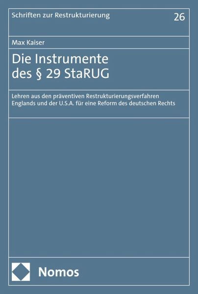 Die vier Instrumente des § 29 StaRUG bilden den Kern des neuen präventiven Restrukturierungsrahmens. Die Arbeit untersucht hinsichtlich dieser Instrumente sowie des Zugangs zu diesen die Gemeinsamkeiten und Unterschiede zum U.S.-amerikanischen Chapter 11-Verfahren sowie zu den vergleichbaren englischen Verfahren (CVA, SoA und Restructuring Plan). Einbezogen wird zudem die noch in den Entwurfsfassungen des StaRUG vorgesehene Vertragsbeendigung. Dabei werden vielfach Gemeinsamkeiten aber auch Unterschiede zwischen den Verfahren aufgezeigt. Hinsichtlich einiger Aspekte arbeitet die Untersuchung jedoch - insbesondere unter Berücksichtigung praktischer Erwägungen - Defizite des deutschen Rechts und einen entsprechenden Reformbedarf heraus.