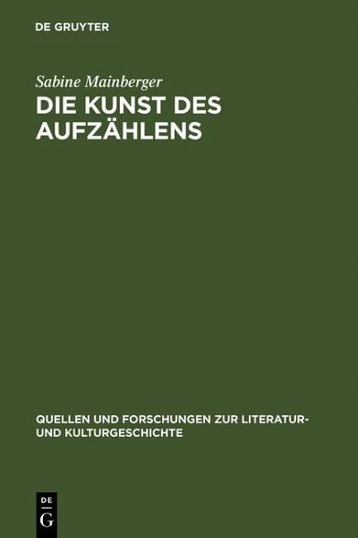 Aufzählungen finden sich in der modernen Literatur außerordentlich häufig, z.B. bei Flaubert, Joyce, Borges, Perec... Sie gehören aber auch quer durch die Geschichte und die Kulturen zur Literatur überhaupt; man denke an Homer, die Bibel, Sei Shonagon, Rabelais, Swift... Ihre konkreten Gestalten sind Inventar, Litanei, Gesetzestafel, Beschreibung, Rezept, Fragebogen, Chronik u.a.