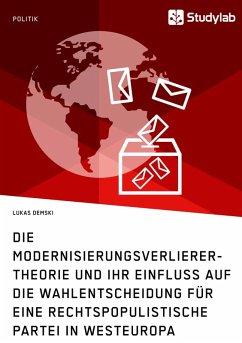 Das Jahr 2016 wurde in vielen Jahresrückblicken als "Das Jahr der Populisten" bezeichnet. Die Wahl Donald Trumps zum amerikanischen Präsidenten und die durch ein Referendum herbeigeführte Entscheidung der Briten, die Europäische Union zu verlassen, sind nur einige Beispiele dafür, wie sehr der Begriff des Rechtspopulismus im Jahr 2016 im Fokus der Öffentlichkeit stand. Erfolge wie der von Donald Trump zeigen, dass es möglich ist, große Teile der Bevölkerung mithilfe des rechtspopulistischen Politikstils zu erreichen. Dabei ist die Gegenüberstellung von "Volk" und "korrupter Elite" eine der Kernmerkmale des Rechtspopulismus. Diese Publikation beschäftigt sich daher mit der Modernisierungsverlierer-Theorie von Tim Spier. Diese Theorie möchte den Erfolg rechtspopulistischer Parteien in Westeuropa erklären. Da Spier seine Theorie auf Daten aus den Jahren 2003 und 2005 stützt, wendet der Autor dieses Buches die Theorie für einen aktuelleren Zeitpunkt erneut an. Dazu untersucht der Autor den Einfluss der aus Spiers Theorie abgeleiteten Indikatoren auf die Wahlabsicht einer rechtspopulistischen Partei anhand aktueller Daten aus dem Jahr 2014. Sein Ziel ist es die Frage zu klären, ob sich die Modernisierungsverlierer-Theorie für das Jahr 2014 dazu eignet, die Erfolge rechtspopulistischer Parteien in Westeuropa zu erklären.