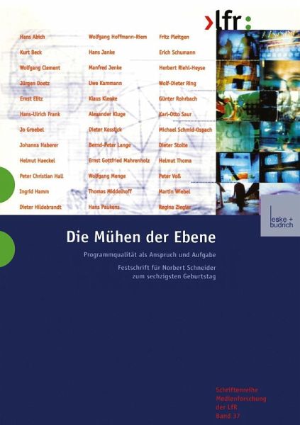 :"Die Mühen der Ebene", entlehnt von Bertold Brecht, überschrieb Norbert Schneider sein erstes Grundsatzreferat als Direktor der Landesanstalt für Rundfunk Nordrhein-Westfalen (LfR) im November 1993 vor deren Rundfunkkommission. "Es ist klar, was uns der Dichter damit sagen will: eben noch hat man geglaubt, man hätte die größten Probleme gelöst und das Gebirge hinter sich. Da stellt man fest, daß auch die Ebene ihre Tücken hat und daß es jetzt erst richtig los geht." Das Referat enthielt auch einen Hinweiszur Programmqualität: "Die Diskussion über die Programmqualität ist eine zentrale Aufgabe für die nächsten Jahre." "Programmqualität als Anspruch und Aufgabe" wurde deshalb als Untertitel dieser Festschrift aus Anlass des 60. Geburtstages von Norbert Schneider gewählt.