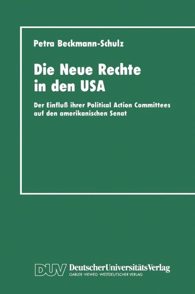 1. Einleitung.- 2. Die Neue Rechte.- 2.1 Die theoretischen Erklärungsansätze für das Selbstverständnis,die Entwicklung und die Zielgruppen der Neuen Rechten.- 2.2 Organisation und Koordination der Neuen Rechten.- 2.3 Die Neue Rechte und die Medien.- 2.4 Exkurs: Die "Neue Christliche Rechte" (New Christian Right).- 2.5 Strukturmerkmale der Neuen Rechten.- 2.6 Die Neue Rechte im Rahmen des amerikanischen (Neo-) Konservatismus.- 2.7 Die Neue Rechte -eine soziale Bewegung?.- 3. Political Action Committees im Politischen System der USA - Die Sonderstellung der Pacs der Neuen Rechten.- 3.1 Rechtliche Anforderungen an PACs und organisatorische Umsetzung.- 3.2 Die Bereiche der PAC-Wahlkampfarbeit: Finanzielle Unterstützung, ienstleistungen und kandidatenunabhängige Wahlkämpfe.- 3.3 Die Entwicklung der Political Action Committees: Der PAO-Boom der siebziger Jahre.- 3.4 Die Wahlkampfkomitees der Neuen Rechten.- 3.5 PACs und Parteien -Kooperation oder Konkurrenz?.- 4. Bestimmungsfaktoren des Legislativen Verhaltens von Senatoren und ReprÄSentantenhausabgeordneten.- 4.1 Vier Phasen des Gesetzgebungsprozesses als Indikatoren für legislatives Verhalten.- 4.2 Elemente des Erklärungskonzeptes dieser Arbeit zum legislativen Verhalten von Kongreßmitgliedern.- 5. Die Empirische Analyse.- 5.1 Grundzüge -Themensprektrum, Datenbasis, Variablenauswahl.- 5.2 Die Grundgesamtheit: die amerikanischen Senatoren.- 5.3 Die Untersuchungszeiträume.- 5.4 Die Wahlkampfkomitees.- 5.6 Schlußfolgerungen aus der qualitativen und quantitativen Analyse.- 6. Schlussbetrachtung.- AusgewÄhlte Literatur.