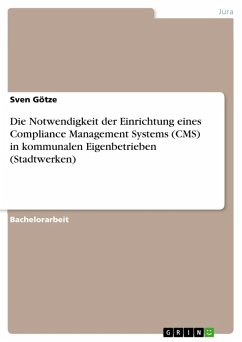 Bachelorarbeit aus dem Jahr 2016 im Fachbereich Jura - Zivilrecht / Handelsrecht, Gesellschaftsrecht, Kartellrecht, Wirtschaftsrecht, Note: 1,3, DIPLOMA Fachhochschule Nordhessen; Zentrale, Sprache: Deutsch, Abstract: Regeln werden aufgestellt, damit Gesellschaften funktionieren und Unternehmen in einem lauteren Wettbewerb stehen können. Das diese folglich eingehalten werden müssen, dürfte selbstverständlich sein. Im Wirtschaftsleben hat sich hierzu der Begriff Compliance herausgebildet, welcher wörtlich übersetzt zu-nächst nichts anderes bedeutet, als Regeln zu befolgen. Seit den 1990er Jahren findet dieser Terminus sukzessiven Niederschlag im deutschen Sprachgebrauch, Unternehmen entwickeln seither entsprechende Strukturen. Die Verwendung der Begrifflichkeit hat verschiedene Ursachen: Einerseits trägt die fortschreitende Globalisierung kontinuierlich zur Anglisierung unserer Sprache bei, andererseits werden in den stark reglementierten Sektoren das Bank- und Versicherungswesens sämtliche Maßnahmen der Gesetzestreue unter Compliance subsumiert. Um alle Regeln zu befolgen, bedarf es vor allem für Unternehmen einer Systematik, um dies sicherzustellen. Diesen Gedanken verfolgt ein Compliance Management System (CMS), indem es Prozesse und Auslöser für Maßnahmen definiert. Schließlich können nur die Regeln eingehalten werden, welche bekannt sind. Die stete Wandlung der Regulierung im Wirtschaftsleben und der Ansprüche von Stakeholdern sowie Aufsichtsgremien machen es erforderlich, auf Veränderungen kurzfristig reagieren zu können. Durch ein CMS soll Regelverstößen ("Non-Compliance") vorgebeugt werden und, soweit dies nicht erfolgreich ist, diese erkannt und bearbeitet werden. Der Umfang der Regeln bestimmt sich nach gesetzlichen und sonstigen Vorgaben, die ein Unternehmen zu erfüllen hat und stellen somit das für die Organisation geltende Recht dar. Vor allem kommunalen Unternehmen, welche sich aufgrund ihres Geschäftszwecks nicht ausschließlich im freien Wettbewerb betätigen (können), muss viel an der Reputation gelegen sein. In den Geschäftsfeldern der Daseinsvorsorge haben die Unternehmen eine besondere Verantwortung inne, welche sich in einem gesteigerten Vertrauen seitens der Öffentlichkeit äußert. Dennoch mangelt es in öffentlichen Unternehmen oftmals an einem allgemeinen Bewusstsein für die Thematik Compliance. Teilweise wird sie als "Modethema" abgewertet oder es herrscht ein hohes Maß an Unsicherheit vor, wie mit dieser umzugehen ist. Diese problematische Situation spiegelt sich auch im privaten Sektor wider. So hatten einer Studie zufolge im Jahr 2013 nur ca. 74% der befragten Unternehmen Compliance-Programme etabliert.