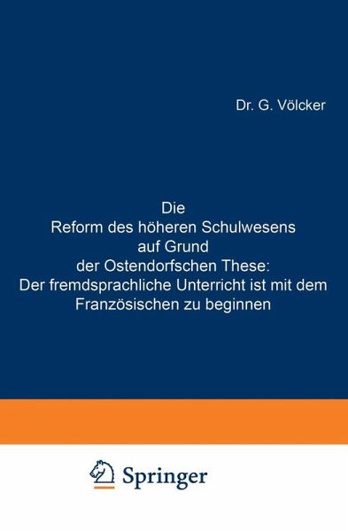 Die Reform des höheren Schulwesens auf Grund der Ostendorfschen These: Der fremdsprachliche Unterricht ist mit dem Französischen zu beginnen (eBook, PDF)