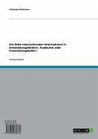 Studienarbeit aus dem Jahr 2002 im Fachbereich VWL - Internationale Wirtschaftsbeziehungen, Note: 1,0, Hochschule Mainz (Wirtschaftswissenschaften), Veranstaltung: Internationale Wirtschaftsbeziehungen, Sprache: Deutsch, Abstract: 1.1 Thema "Die Rolle Internationaler Unternehmen in Entwicklungsländern. Ausbeuter oder Entwicklungshelfer?"2 1.2 Lösung Die Analyse ist auf Internationale Unternehmen (IU) der Industrieländer begrenzt, die als Arbeitgeber in Entwicklungsländern auftreten. Folglich ist die Wirkung von Ausländischen Direktinvestitionen (ADI) auf die Entwicklung der Zielländer3 Gegenstand dieser Arbeit. IU treten in verschiedener Weise und mit unterschiedlichen Absichten in die Entwicklungsmärkte ein, zudem bieten die aufnehmenden Länder völlig ungleiche Voraussetzungen. Alle genannten Variablen beeinflussen die Rolle IU in Entwicklungsländern. Um eine möglichst homogene Gruppe von IU untersuchen zu können, ist die Analyse auf sogenannte effizienzsuchende4 Investitionen begrenzt. Rohstoffsuchende- und marktsuchende- Investitionen bleiben außen vor.5 Dabei werden Aspekte der Markteintrittsformen: M&A und Greenfield Investment berücksichtigt. 6 Wenngleich in der Literatur keine Einigung über die eigentliche Bedeutung des Begriffs "Entwicklung" herrscht, so wird er doch häufig als direkt korrespondierend mit dem Begriff "Wachstum" verstanden.7 Ausgehend von dieser Annahme soll zunächst auf die Relation zwischen ADI und Wirtschaftswachstum eingegangen werden. Die Wirkung von ADI auf das Wachstum hängt aber nicht nur isoliert von der Wirtschaftsleistung der Auslandsinvestition ab. Vielmehr können durch die Aktivität der ADI komplexe Impulse auf Zahlungsbilanz, Technologie sowie Markt- und Wettbewerbsstruktur des Empfängerlandes ausgehen, die wiederum das nachhaltige Wirtschaftswachstum determinieren. Deshalb wird der Einfluss von IU auf die genannten Aspekte einzeln analysiert. [...] 2 Siehe: Anhang I - Definitionen zu Begiffen des Titels, S. 16 3 Zielländer = Empfängerländer = Entwicklungsländer = Dritte Welt 4 Der Ausdruck "Effizienz" bezieht sich dabei i.d.R. auf Kostenvorteile aus dem Produktionsfaktor Arbeit. 5 Siehe: Nunnenkamp, Peter: Kieler Diskussionsbeiträge, Foreign direct investments in developing countries. Kiel 2001, S.9 6 M&A = Mergers & Acquisitions = Fusionen und Übernahmen, Greenfield Investment = Neuaufbau 7 Entgegen der dargestellten Auffassung vertritt bspw. Wolfgang Sachs den Ansatz, dass jeder Versuch, Entwicklung normativ zu definieren, die Funktion impliziere, "alle Gesellschaften auf eine von den Entwicklungsländern vorgezeichnete Bahn der Geschichte zu platzieren", siehe: Hein, Wolfgang: Unterentwicklung - Krise der Peripherie, Obladen 1998, S. 148.