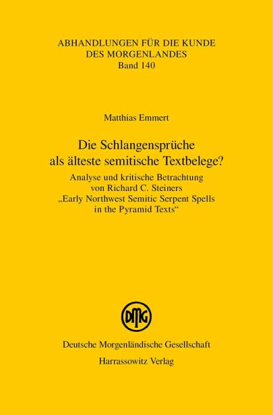 Diese Publikation widmet sich einer Analyse und kritischen Betrachtung von Richard Steiners "Early Northwest Semitic Serpent Spells in the Pyramid Texts" (Eisenbrauns, 2011). Steiner zufolge sind bislang unklare Passagen der Schlangensprüche in der Unaspyramide als hieroglyphische Transkriptionen eines frühen westsemitischen, kanaanäischen Dialekts des levantinischen Raumes zu deuten. Demnach stellen diese die ältesten semitischen Textpassagen dar, die auch den ersten vollständigen akkadischen Textbelegen vorausgehen. Matthias Emmert untersucht in seiner Studie Steiners Ergebnisse neben inhaltlichen und orthographischen Aspekten insbesondere anhand phonologischer Kriterien: Die möglichen Lautwerte der dargelegten semitischen Transkription werden den maßgeblichen rekonstruierten altägyptischen Lautwerten der auftretenden Hieroglyphen gegenübergestellt und anhand ihrer Ähnlichkeit bewertet. Mehrere Phonemkorrelationen können auf Basis dieser Analyse nicht bestätigt werden. Zusammen mit orthographischen Unstimmigkeiten und methodischen Mängeln bedeutet dies, dass sich Steiners konkrete Interpretation dieser Schlangenspruchpassagen in der dargebrachten Form nicht verifizieren lässt. Daher bleibt es weiterhin völlig offen, ob diese nun semitischen, ägyptischen (in "kodierter" bzw. ungewöhnlicher Schreibung) oder anderssprachigen Inhalts sind.
