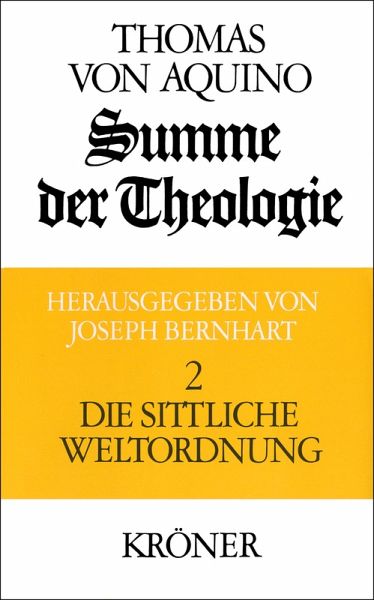 Die von Joseph Bernhart übersetzte 3-bändige Kröner-Ausgabe der >Summa theologiae< bietet eine mit großem Sachverstand zusammengestellte Auswahl mit Einführungen, Zwischenberichten und erläuternden Anmerkungen, einem umfangreichen Glossar und Sachregister. Der zweite Band enthält 114 Abhandlungen über die sittliche Ordnung, über die Zweckmäßigkeit der Schöpfung, das höchste Gut und die Rechtfertigung des Menschen vor Gott.