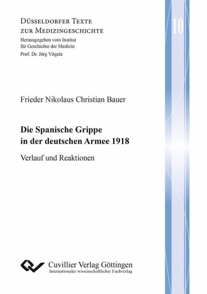 Frieder Bauer unterzieht den Ablauf der Spanischen Grippe im Sommer und Herbst 1918 in der deutschen Armee anhand von militärhistorischen Quellen einer umfassenden Analyse. Die Spanische Grippe war eine Grippepandemie, die in den Jahren 1918/19 weltweit 20 bis 50 Millionen Menschen das Leben kostete. Ihr Verlauf wird zumeist in drei Wellen unterteilt, mit einer ersten Grippewelle im Frühjahr und Sommer 1918, die durch eine hohe Morbidität, aber geringe Letalität charakterisiert war, einer zweiten im Herbst und Winter 1918 mit einer für Grippe sehr hohen Letalität, und einer dritten Welle im Frühjahr 1919 bzw. 1920. Aufgrund der Auflösung der Armee nach dem Kriegsende wird die dritte Grippewelle in der vorliegenden Arbeit nicht mehr thematisiert. Untersucht werden vor allem Ausbreitung und Verlauf der Grippe in der deutschen Armee, das Ausmaß der beiden ersten Wellen und ihre Auswirkung auf die Truppen. Weiterhin werden die Bewertung der Grippe durch die oberen Kommandoebenen und die Versuche der Diagnostik, Prävention und Therapie beschrieben, die von den deutschen Militärärzten unternommen wurden. Die Frage einer Immunisierung durch die erste Welle und ihre Auswirkungen werden ebenfalls diskutiert. Da diese Arbeit besonders medizinische und epidemiologische Aspekte der Pandemie in der Armee behandelt, können andere Aspekte, wie beispielsweise das persönliche Erlebnis der Seuche aus der Perspektive der Soldaten, nur am Rande berücksichtigt werden.