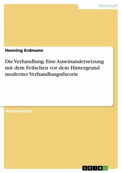 Diplomarbeit aus dem Jahr 1999 im Fachbereich BWL - Offline-Marketing und Online-Marketing, Note: 1,3, Hochschule für Technik und Wirtschaft Berlin, Veranstaltung: Diplom Studiengang Wirtschaftskommunikation, Sprache: Deutsch, Abstract: Was ist Wirtschaftskommunikation? Seit dem Beginn des Studiums diesen Namens an der FHTW Berlin wird mir diese Frage gestellt. Eine (damals) nicht ganz ernst gemeinte Deutungsvariante möchte ich mit der vorliegenden Diplomarbeit aufgreifen. Verhandeln ist in unserer Gesellschaft ein allgegenwärtiges soziales Gebaren. Einige Menschen beherrschen es gut, andere weniger, aber einige ganz wenige sind perfekt. Sie erwecken den Eindruck, als würden sie selbst auf dem Postamt noch Rabatte bekommen. Insgeheim fürchten wir alle, ihnen eines Tages am falschen Ort gegenüberzustehen, dann nämlich wenn sie uns das letzte Hemd unter dem Mantel ausziehen. Doch Scherz beiseite. Das Feilschen genießt in unseren Breiten einen zweifelhaften Ruf. Ich meine zu Unrecht. In der vorliegenden Arbeit möchte ich mich mit gängiger Theorie zur Verhandlung auseinandersetzen, um zu untersuchen, worauf es beim Verhandeln allgemein und beim Feilschen besonders ankommt. Dabei habe ich mich besonders darauf konzentriert, einen Überblick zu erstellen. Dazu beschäftige ich mich im zweiten (ersten) Abschnitt mit Begriffen aus verschiedenen Bereichen der Verhandlungstheorie, um abzustecken, welche Parameter überhaupt Berücksichtigung finden. Im dritten Abschnitt gehe ich auf psychologische und soziologische Aspekte ein, die in Verhandlungen wichtig sind. Im vierten Kapitel werden einige ausgewählte, besonders prominente Verhandlungskonzepte vorgestellt. Der fünfte Abschnitt ist der Strategie gewidmet. Hier stelle ich grundsätzliche Richtungen vor, um anzudeuten in welchem Spektrum Verhandlungsstrategien liegen können. Im sechsten Abschnitt schließlich steht eine Zusammenfassung in der Form eines Handlungsleitfadens und ein Beispiel, wie dieser Handlungsleitfaden praktisch umgesetzt werden kann.