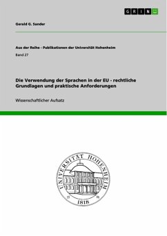 Wissenschaftlicher Aufsatz aus dem Jahr 2003 im Fachbereich Jura - Europarecht, Völkerrecht, Internationales Privatrecht, Universität Hohenheim (Institut für Rechtswissenschaft), Veranstaltung: Vortrag an der Univ. Budweis, Sprache: Deutsch, Abstract: Weltweit nimmt im Zuge der Globalisierung die Dominanz der englischen Sprache als Verkehrssprache weiter zu. Im familiären und regionalen Umfeld behalten die übrigen Sprachen, von denen es weltweit ca. 6.700 - davon 1.200 standardisiert - gibt, ihre Bedeutung bei und wirken Identität stiftend. Internationale Organisationen müssen auf die nationale Souveränität und Kultur ihrer Mitgliedstaaten Rücksicht nehmen, wenn sie selbst besondere rechtliche Beziehungen zu den Bürgern ihrer Mitgliedstaaten begründen. Den Sprachen der Mitgliedstaaten kommt im institutionellen System der Europäischen Union deshalb eine besondere Bedeutung zu. Sie sind für die tägliche Kommunikation der Politiker und Beamten in Europa notwendig, werfen jedoch auch erhebliche praktische Probleme bei ihrer Verwendung auf. Manche sprechen von einem babylonischen Sprachenwirrwarr in Brüssel, zu dem es aber keine Alternative zu geben scheint. Allgemein akzeptiert ist die Zugehörigkeit der Sprache zur nationalen Identität der Mitgliedstaaten, die von der Europäischen Union geachtet wird (vgl. Art. 6 Abs. 3 des EU-Vertrages, Art. 22 der Europäischen Charta der Grundrechte). Sie ermöglicht nicht nur Kommunikation, sondern ist darüber hinaus auch Kultur stiftend. Die Errichtung eines Sprachenregimes in der Gemeinschaft stellte deshalb seit ihren Anfängen in den fünfziger Jahren eine große Herausforderung für die EG/EU dar. Als Folge der Erweiterung der EU nach Osten und Süden im Jahr 2004 werden sich die Probleme bei der Verwendung der zahlreichen Sprachen in den Institutionen der EU noch weiter verschärfen.
