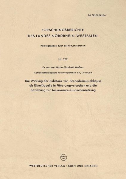 Die Wirkung der Substanz von Scenedesmus obliquus als Eiweißquelle in Fütterungsversuchen und die Beziehung zur Aminosäure-Zusammensetzung (eBook, PDF)