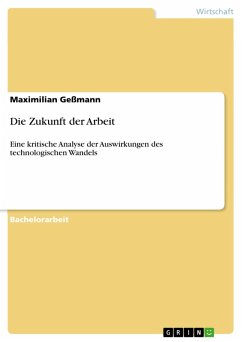 Bachelorarbeit aus dem Jahr 2022 im Fachbereich VWL - Makroökonomie, allgemein, Note: 1,0, Duale Hochschule Baden-Württemberg, Stuttgart, früher: Berufsakademie Stuttgart, Sprache: Deutsch, Abstract: Ziel dieser Arbeit ist es, auf der einen Seite die Frage zu beantworten, welche menschliche Arbeit in der vierten industriellen Revolution droht, automatisiert zu werden. Auf der anderen Seite soll dargelegt werden, ob die Ausbreitung von Industrieroboter, künstlicher Intelligenz und anderer Technologie zu Arbeitslosigkeit führt oder doch kompensatorische Effekte überwiegen. Hierzu wird im ersten Schritt analysiert, was Arbeit ist und welchen Bedeutungswandel dieser Begriff mit der Zeit vollzogen hat. Darauf folgt eine Bestandsaufnahme der Arbeit in Deutschland, um den Status quo darzustellen. Der nächste Schritt ist die Analyse der Auswirkungen des technologischen Wandels auf die Arbeit. Zunächst werden die aktuellen und potenziellen technologischen Entwicklungen aufgezeigt, um anschließend zu untersuchen, welche Tätigkeiten in Zukunft durch Technologie ersetzt werden könnten. Abschließend werden unter dem Punkt 4.4 die Folgen der Wirtschaft 4.0 auf Beschäftigung und Gesellschaft erläutert.