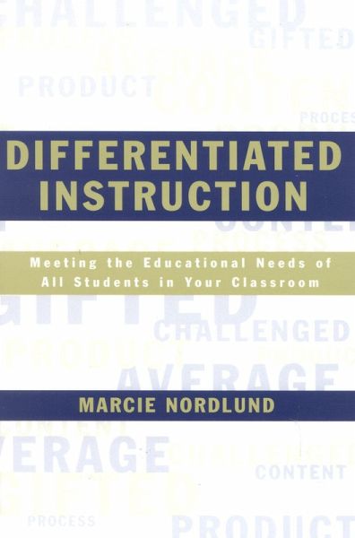 Drawing upon her extensive experience and numerous national presentations, author Marcie Nordlund shares her ideas, creativity, and proven methods of differentiated instruction to help teachers reach each student. Divided into 10 chapters, this book deals with topics ranging from general methods of differentiating instruction to specific methods for students with attention deficit/hyperactivity, learning disabilities, above average intelligence, cognitive impairments, autism, behavioral challenges, and those who are at-risk. The contents of this book have been shared with over 8,000 teachers throughout the United States who have tried the methods and offered feedback. Includes: · Practical charts to help teachers adapt to specific lesson plans · General methods for expanding the curriculum · Specific methods for working with different learning challenges For teachers, administrators, parents, and college students.