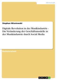 Bachelorarbeit aus dem Jahr 2013 im Fachbereich BWL - Unternehmensführung, Management, Organisation, Note: 91 Punkte (1,5), Cologne Business School Köln, Sprache: Deutsch, Abstract: Die Musikindustrie befindet sich im Wandel. Um es mit den Worten von Cohen, dem ehemaligen Vize-Präsidenten des Major Labels EMI zu sagen: "Musik 1.0 ist tot". Hervorgerufen wird dieser Wandel durch den Einfluss neuer Medien wie dem Internet oder Mobilfunk, die seit Jahren zu einer zunehmenden Digitalisierung unserer Gesellschaft beitragen. Ergebnisse dieser fortschreitenden Digitalisierung sind ein verändertes Konsumverhalten, neue Endgeräte sowie neue Vermarktungswege. Außerdem haben sich auch die rechtlichen, politischen und technologischen Gegebenheiten im Umfeld der Musikindustrie in den letzten 10 Jahren stark verändert. Im Zuge der Digitalisierung spielen auch die Social Media eine große Rolle. Nach Hettler löst Social Media die geographischen Mauern zwischen Menschen auf. Interessante Songs oder Videos auf YouTube verteilen sich wie ein Lauffeuer durch soziale Netzwerke wie Facebook, Twitter und Co. und machen tags zuvor noch unbekannte Künstler über Nacht zu Stars. Die Digitalisierung und damit einhergehend Social Media, führen zu einer Veränderung der Rahmenbedingungen der Musikindustrie. Es entstehen neue Geschäftsmodelle und die alten, jahrelang erfolgreich funktionierenden Geschäftsmodelle werden durch die neuen substituiert. Im Rahmen dieser Bacheor Thesis werden alte und neue Geschäftsmodelle vorgestellt und analysiert. Außerdem wird die Forschungsfrage, inwieweit die neue Kommunikation durch Social Media die Geschäftsmodelle der Musikindustrie verändert, beantwortet. Anfangs werden grundlegende theoretische Zusammenhänge der Musikindustrie erläutert. Die alten Rahmenbedingungen werden vorgestellt, welche auch rechtliche Aspekte mit sich bringen. Darüber hinaus wird anhand des alten Kommunikationsmodells einmal näher erläutert, wie die Unternehmen der Musikindustrie aufbauend auf der traditionellen Wertschöpfungskette ihre Produkte verkauften und mit den Konsumenten kommunizierten. In den Hauptteilen dieser Arbeit werden die neuen Rahmenbedingungen thematisiert, die letztendlich zu den Veränderungen von Geschäftsmodellen führen. Wie diese Veränderung der Kommunikation zwischen Unternehmen und Konsumenten, aussieht und was darauf aufbauend für neue Geschäftsmodelle entstehen, wird in Kapitel 4 beantwortet. Die aufgestellten Hypothesen werden sowohl durch eine vom Autor durchgeführte Umfrage als auch durch ein Experteninterview diskutiert. Abschließend erfolgt ein persönlicher Ausblick des Autors über denkbare zukünftige Geschäftsmodelle.