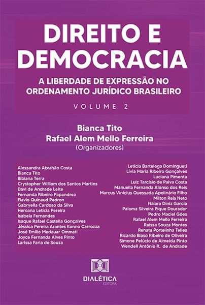 A obra "Direito e Democracia: a liberdade de expressão no ordenamento jurídico brasileiro - vol. 2" apresenta como objetivo a construção de um diálogo entre diversos pesquisadores sobre o direito à liberdade de expressão. Esse, que é um tema que ao longo da história se consagrou como indispensável para a legitimidade dos Estados Democráticos de Direito, é ainda incipiente no cenário brasileiro e permeado por muitas (e complexas) controvérsias. Isso faz com que a pesquisa científica a seu respeito se torne ainda mais importante, sendo necessária para a compreensão do assunto e contribuindo para o desenvolvimento de argumentos que avancem em seu estudo. Diante disso, formada a partir de uma diversidade de concepções e interpretações, com as conclusões as quais nossos autores chegam, a presente obra representa a oportunidade de demonstrar a riqueza do tema, trazendo ao conhecimento de seus leitores as mais distintas fundamentações teóricas para que possam, a partir de cada uma delas e de forma crítica, desenvolver as suas próprias interpretações sobre o tema.