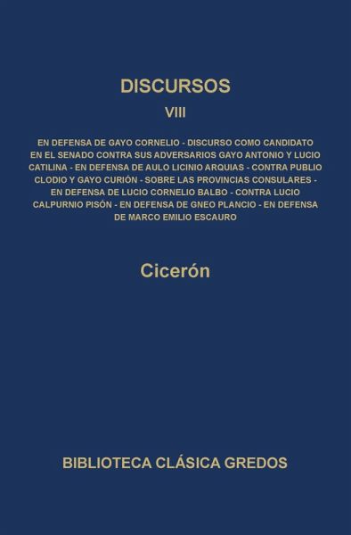 La lectura de estos discursos es una nueva oportunidad de dejarnos llevar por la poderosa palabra de Cicerón. Los discursos de Cicerón reunidos en este volumen ayudan a completar la obra y la imagen del gran orador romano y del complejo entramado histórico, legal, político y personal que le tocó vivir. La lectura de estos discursos es una nueva oportunidad de dejarnos llevar por la poderosa palabra de Cicerón. La figura de Marco Tulio Cicerón (106-43 a.C) constituye, sin lugar a dudas, una de las más relevantes de cuantas nos haya legado la Antigüedad clásica. Nacido en el seno de una familia perteneciente a la nobleza de Arpino, recibió una formación completa en Grecia y Roma que, combinada con su inusual capacidad oratoria y un brillante dominio del lenguaje, le llevó a ser un político republicano prominente, el más destacado abogado de su tiempo, un reputado pensador y un escritor que es el paradigma de la perfección de la lengua latina. Marco Tulio Cicerón es el escritor romano de época clásica del que mayor cantidad de escritos se han podido leer en los veinte largos siglos que han seguido a su muerte.