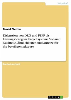 Bachelorarbeit aus dem Jahr 2020 im Fachbereich VWL - Gesundheitsökonomie, Note: 2,3, Bayerische Julius-Maximilians-Universität Würzburg, Sprache: Deutsch, Abstract: Worin liegen die Vor- und Nachteile des PEPP- und des DRG-Entgeltsystems, die in ihrer leistungsorientierten Systematik einige Ähnlichkeiten aufweisen und welche Anreize - egal ob beabsichtigt oder nicht- bieten sie den beteiligten Akteuren? Die Arbeit beschäftigt sich mit diesen Forschungsfragen. Zur Bearbeitung dieser Thematik gibt es zunächst eine kurze Einführung in die tagesgleichen Pflegesätze (TGPS), die sowohl in der Somatik als auch in der Psychiatrie vor der Gültigkeit der beiden neuen Systeme die Erlöserzielung bestimmten. Es folgt ein detaillierter Einblick in PEPP, um das erst vor wenigen Jahren eingeführte Entgeltsystem genauer zu beleuchten und ein Grundverständnis für das leistungsorientierte Prinzip aufzubauen. Im nächsten Schritt wird dann von weiterer intensiver Literaturrecherche und eigens gewählter Bewertungskriterien die Beantwortung der Forschungsfrage stattfinden. Der Kampf um Wirtschaftlichkeit ist im deutschen Gesundheitswesen einer der dominierenden Treiber. Die Ressourcen im Bereich der Gesundheitsleistungen sind naturgemäß begrenzt. Anfang dieses Jahrtausends wurden deshalb in allen somatischen Fächern als Entgeltsystem die Diagnosis Related Groups (DRG) eingeführt. Mitte des vergangenen Jahrzehnts zogen die Fächer Psychiatrie und Psychosomatik mit dem pauschalierenden Entgeltsystem für Psychiatrie und Psychosomatik (PEPP) nach. Das Interesse der Leistungserbringer in der Klinik ist bei beiden Entgeltsystemen darauf ausgerichtet, Patientenversorgung wirtschaftlich zu optimieren, ohne dabei die Behandlung qualitativ zu vernachlässigen. Auf der anderen Seite versuchen die Krankenkassen möglichst sparsam mit ihren finanziellen Ressourcen hauszuhalten. Konflikte entstehen, die durch die leistungsorientierten Entgeltsysteme eigentlich hätten minimiert werden sollen.