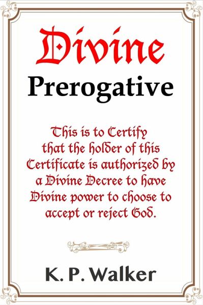 The divine prerogative enables you to wield divine power to accomplish one miracle. It is given to each human as a GIFT from God (the God revealed in the Bible). Read about this exhilarating opportunity here in this short free book and you may even obtain clarity concerning the purpose of human existence.